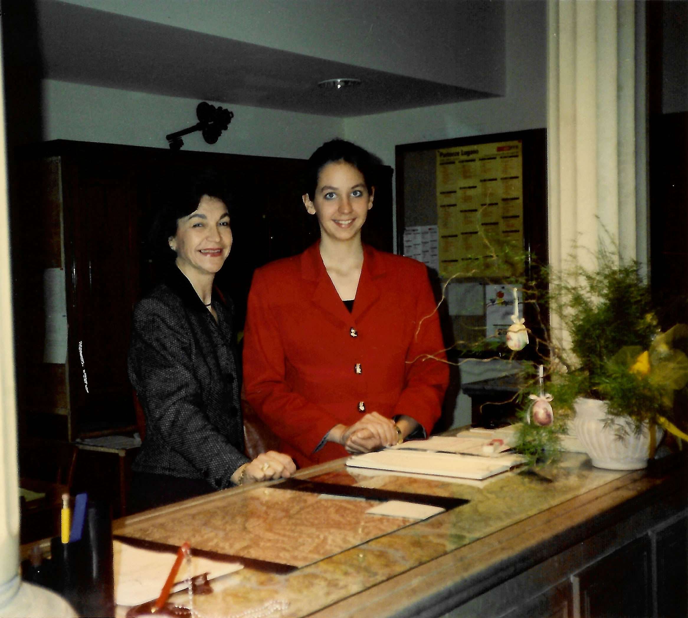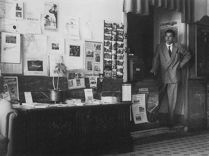 La réception de l’hôtel a connu de nombreuses transformations au fil du temps, influencées par l’évolution des habitudes de voyage et des modalités d’interaction avec les clients. Sur les images présentées à côté, on découvre l’entrée telle avant 1957 : un espace d’accueil sans un véritable comptoir de réception. Les formalités d’enregistrement et de paiement étaient en effet peu fréquentes, les séjours durant plusieurs semaines.