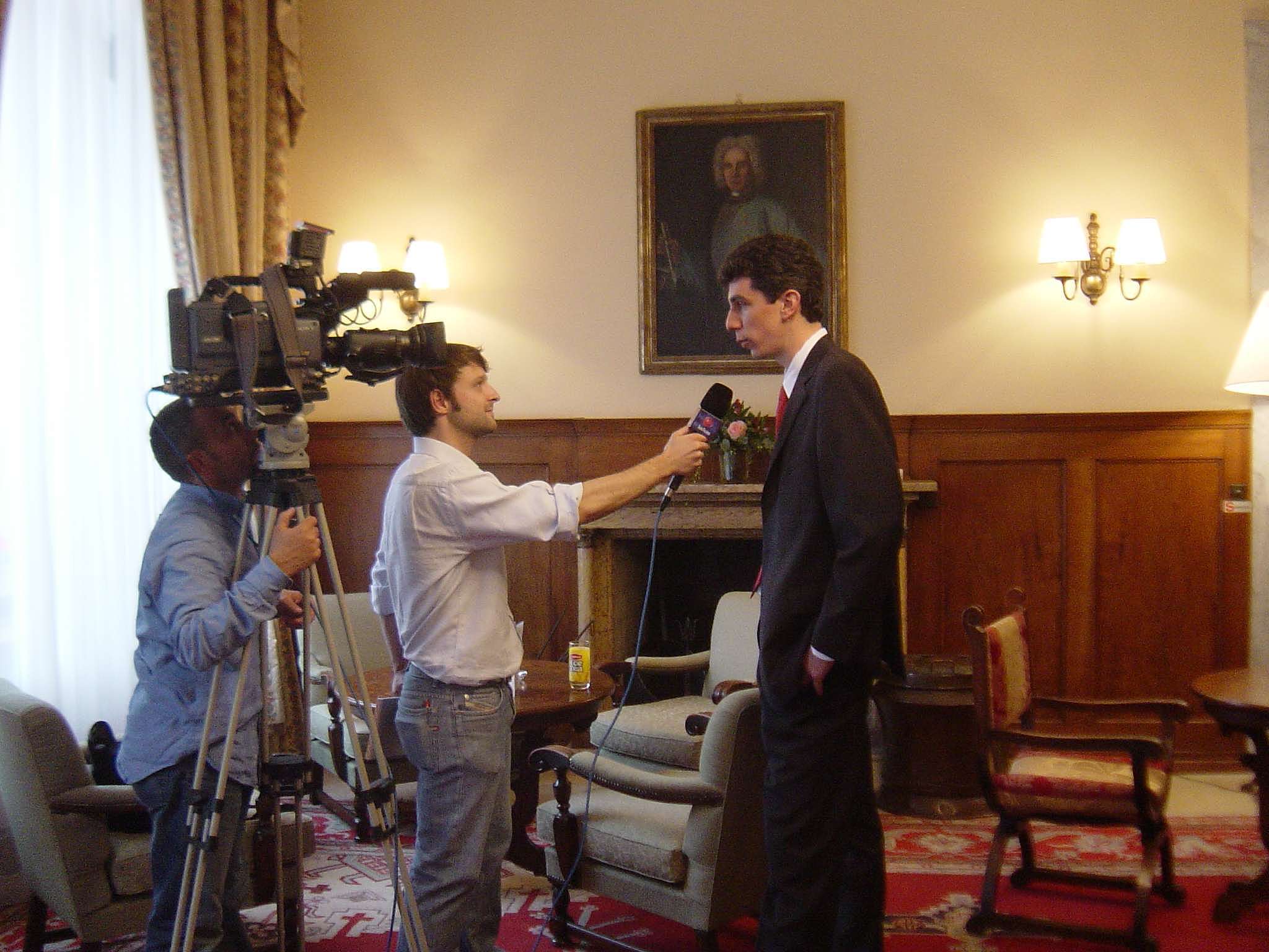 Giulio Schmid avec des journalistes, Nok Schmid et M. Mazzantini