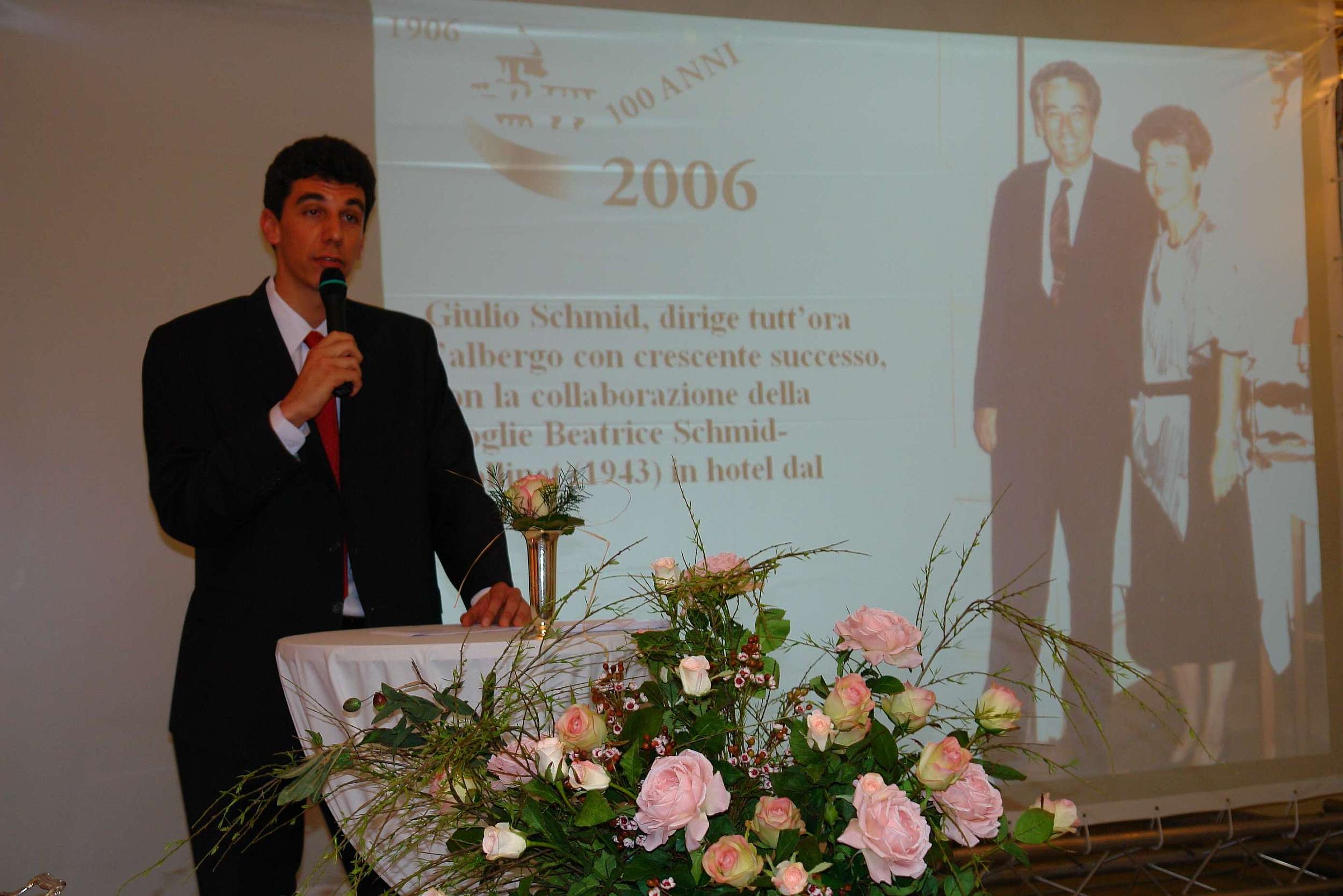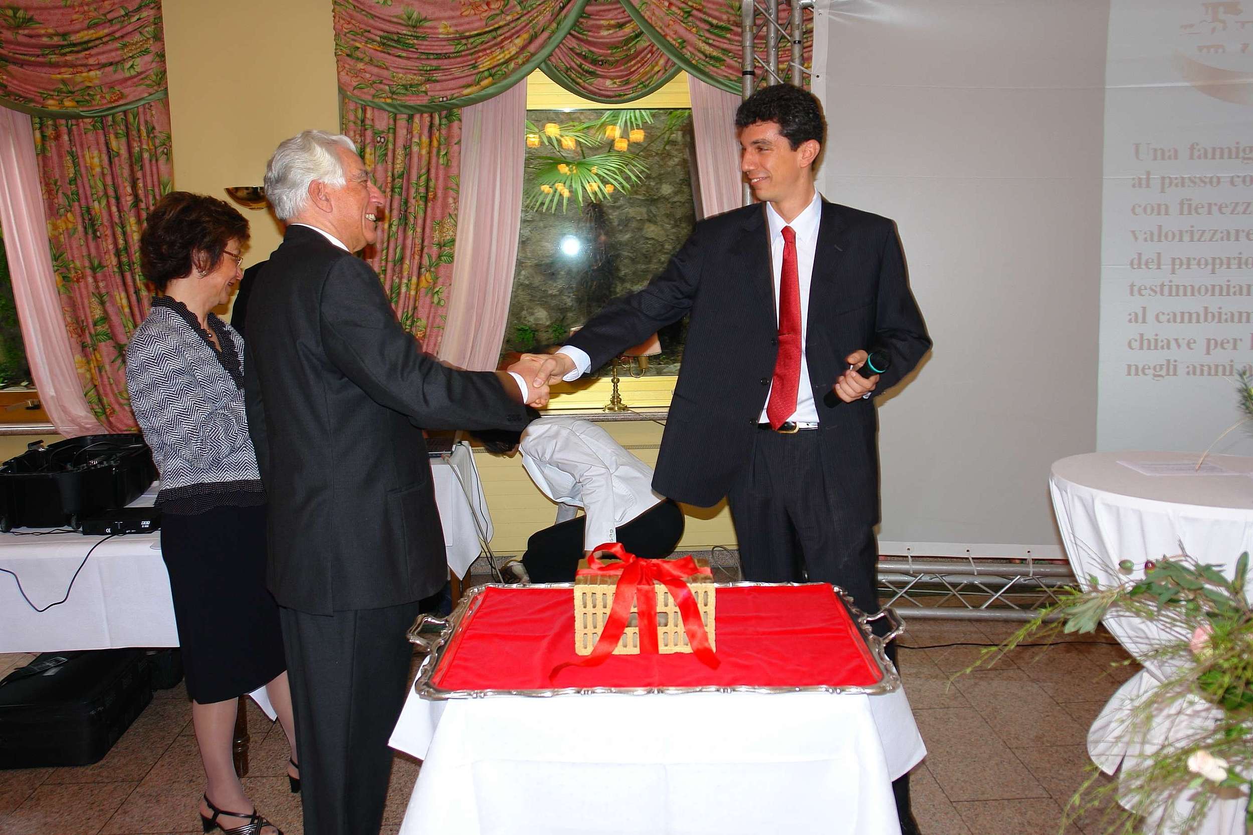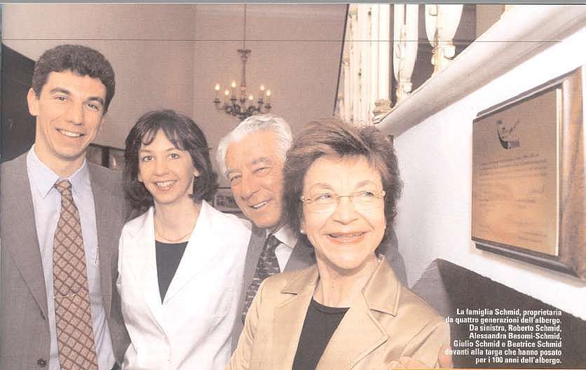 Exactement cent ans après l’inauguration de l’hôtel, en présence du vice-syndic de Lugano, M. Erasmo Pelli, la quatrième génération de la famille, représentée par Alessandra et Roberto Schmid, souhaita rendre hommage à leurs parents. Ils leur offrirent la symbolique brique d’or, témoignage concret de l’engagement consacré à renforcer les fondations de l’hôtel et à continuer de construire jour après jour, non seulement au sens symbolique, mais aussi dans la réalité quotidienne.