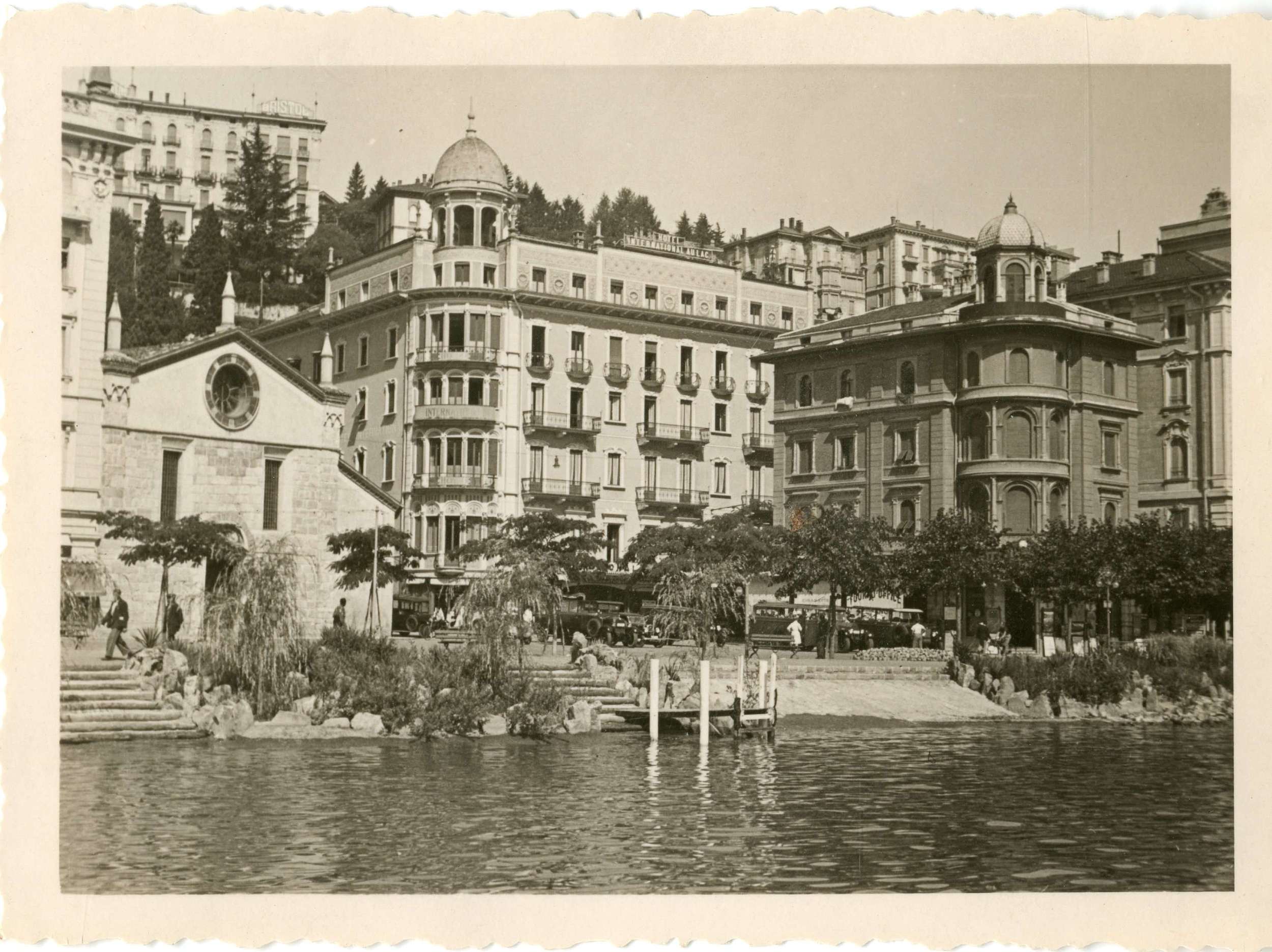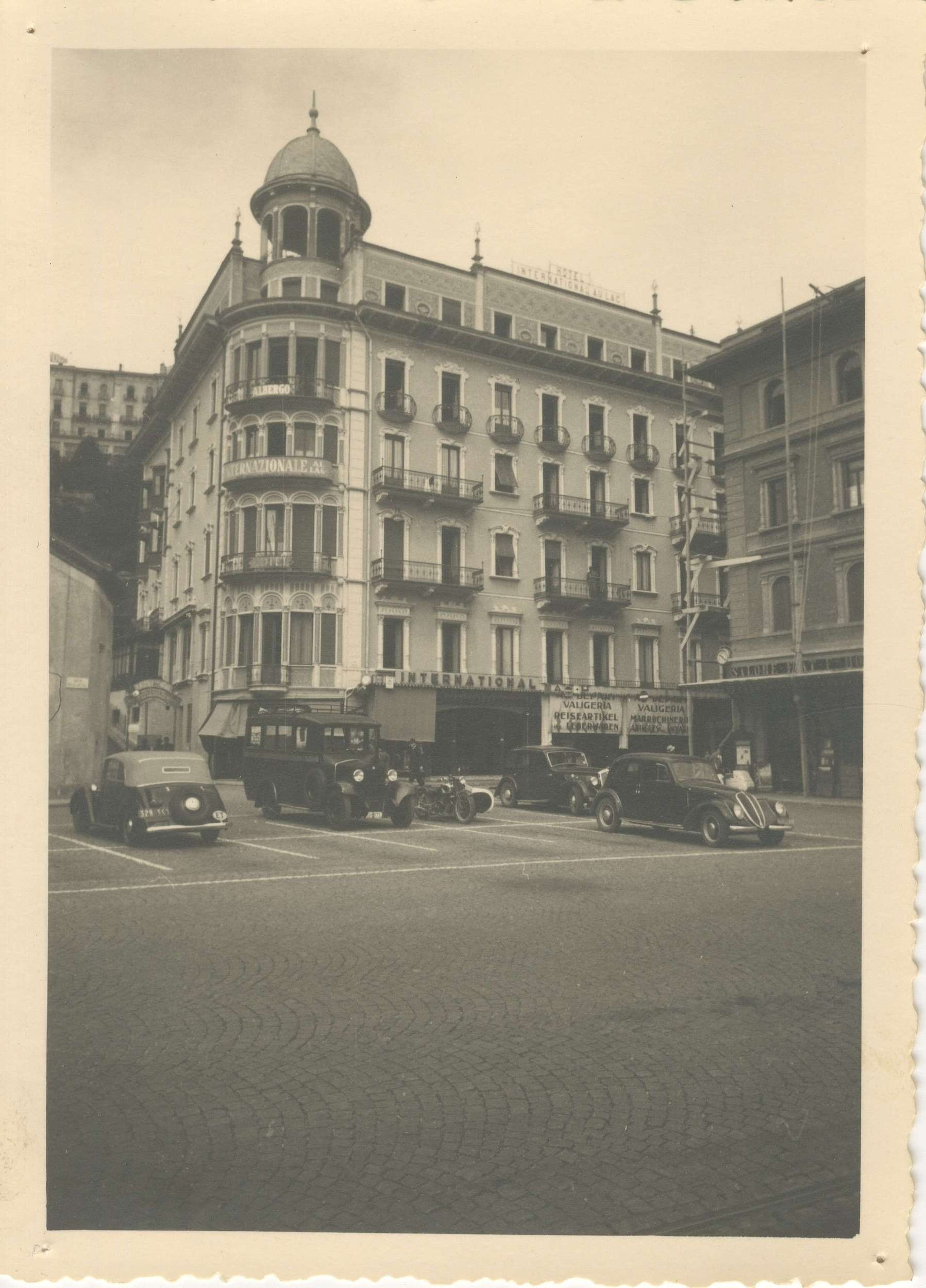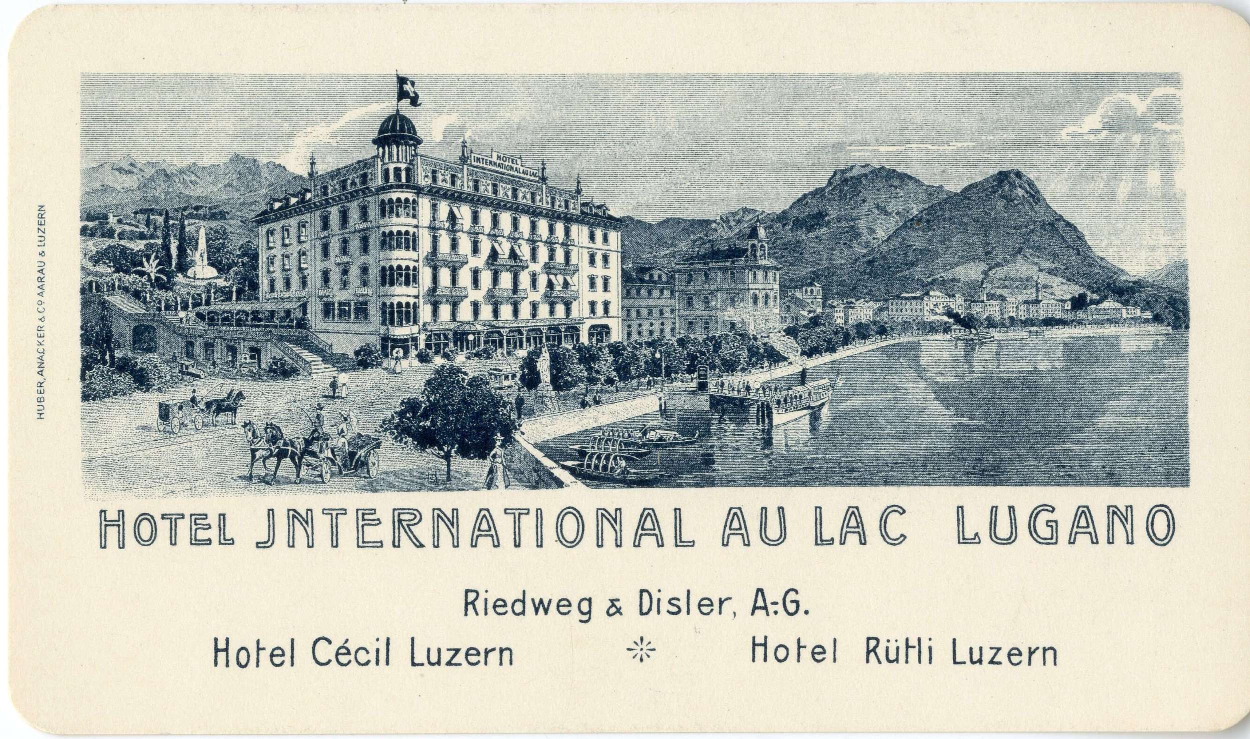En 1905, l’ouverture d’un deuxième accès du Valais vers le sud par le tunnel du Simplon était prévue et devait être mise en valeur en 1906 par l’Exposition universelle de Milan intitulée «Exposition internationale du Simplon». Les travaux prirent du retard et l’ouverture fut repoussée au printemps 1906. Entre septembre 1905 et avril 1906, Anton Disler transforma en six mois un bâtiment existant de la Via Nassa en un hôtel de 120 lits. L’Hotel International au Lac naquit probablement dans le sillage de l’exposition «Internationale» de Milan.