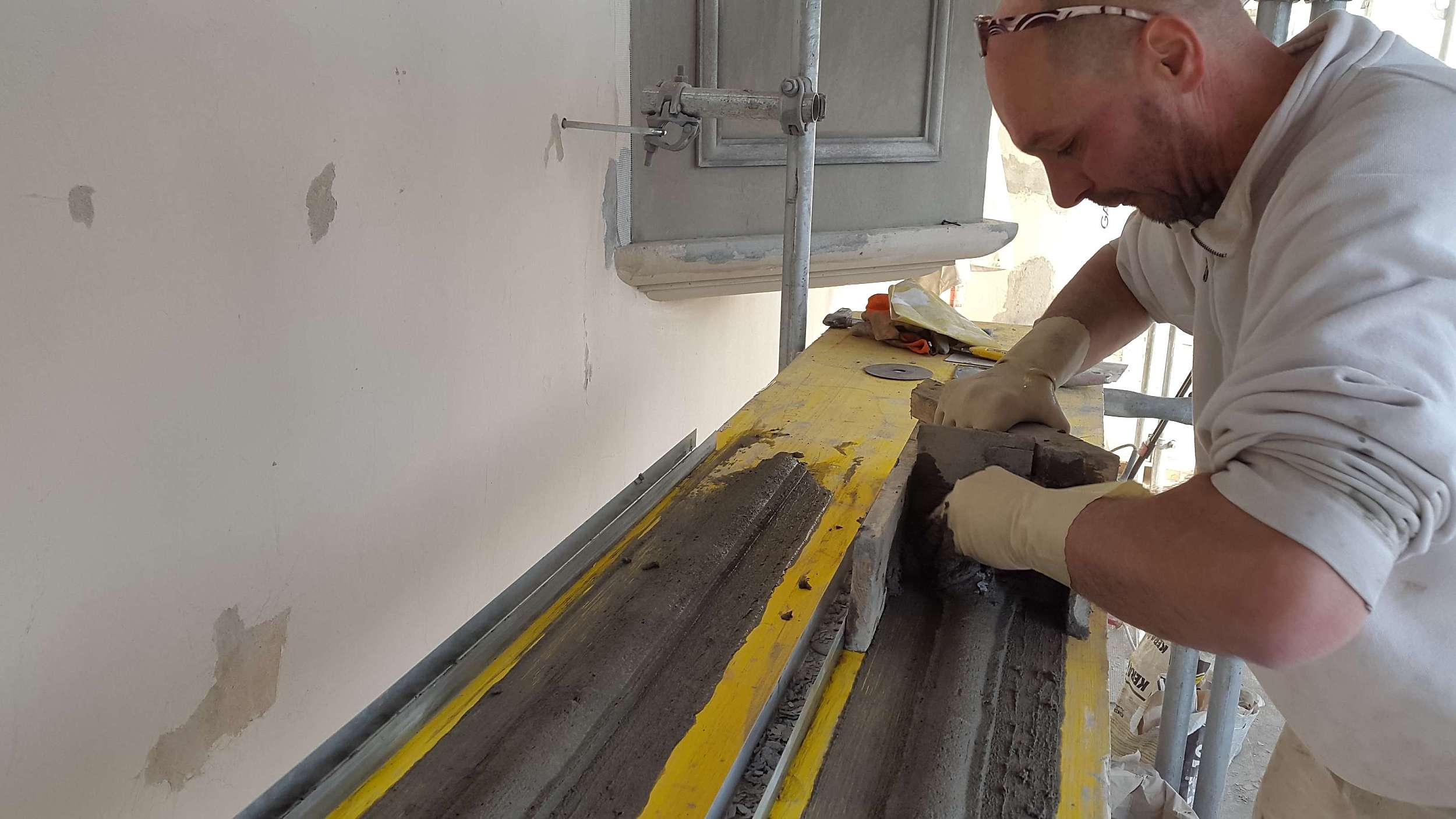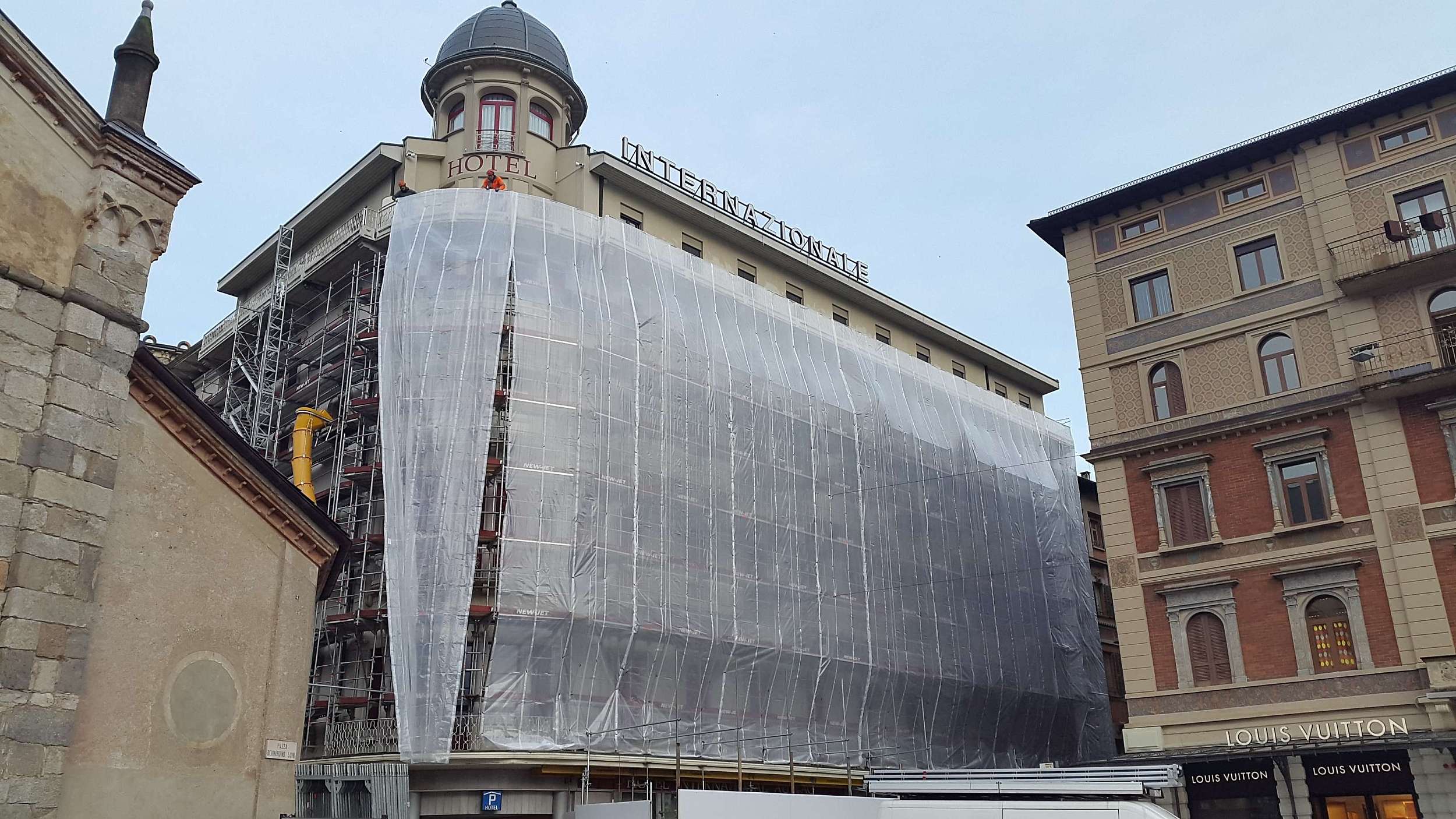 Depuis de nombreuses années, Roberto Schmid et ses parents, Giulio et Beatrice, rêvaient de redonner couleur et fraîcheur à la façade, qui avait été peinte en gris uniforme dans les années 1930. À cette époque, les chapiteaux, les reliefs et les décorations polychromes étaient considérés comme excessifs et démodés.
