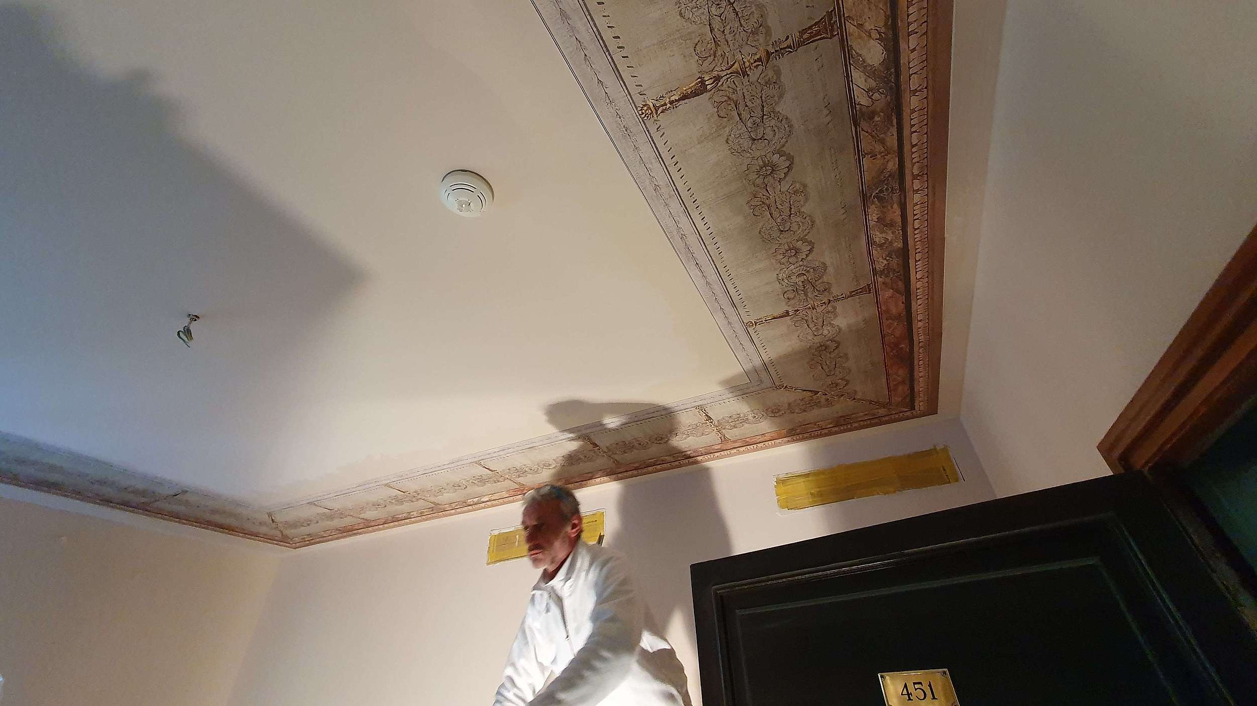 Lorsque nous ouvrons les plafonds ou abattons des murs, des témoignages du passé de l’hôtel réapparaissent : anciens enduits, traces de décorations et signes du passage de ceux qui ont fait vivre ces lieux. Et avant de tout refermer, nous laissons nous aussi notre signature – une petite marque de notre présence dans l’histoire de l’International au Lac.